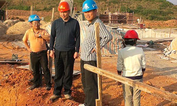 吳義泉總指揮現(xiàn)場(chǎng)查看舍邊電排站副廠房施工