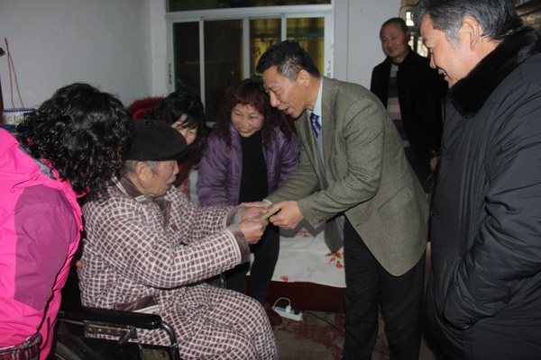 2016年1月26日,江西省水利廳廳長(zhǎng)羅小云一行,冒著嚴(yán)寒前往省水建公司職工生活基地,親切看望離退休老同志,公司董事長(zhǎng)王元旦陪同慰問(wèn)。
