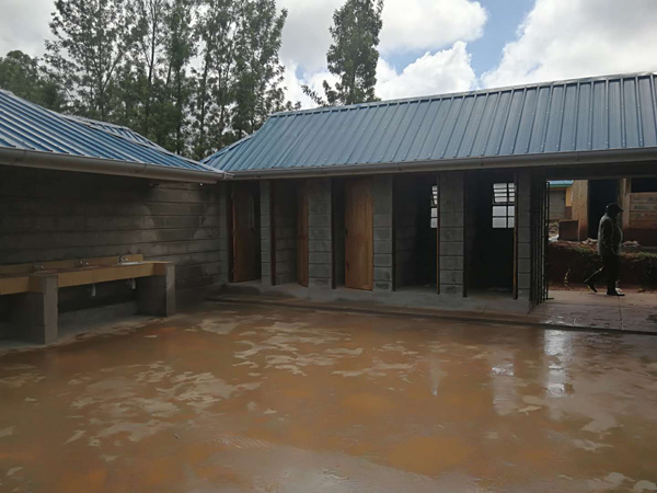 2020年初,肯尼亞公司總經理賀翔及286公路項目經理廖會文,在陪同肯尼亞議會常務秘書Matinga及交通部領導巡視286公路項目時發(fā)現(xiàn)當?shù)豊garu小學公共衛(wèi)生設施極其簡陋,嚴重危害全校師生在疫情期的身體健康。肯尼亞公司發(fā)揚“江西水建”貫有的“捐贈公益,造福社會”的優(yōu)良傳統(tǒng),為小學捐建公共衛(wèi)生設施。施工期間恰逢雨季,疫情肆虐,人員物資極度匱乏,肯公司加大施工力度,克服重重困難,圓滿完成施工。