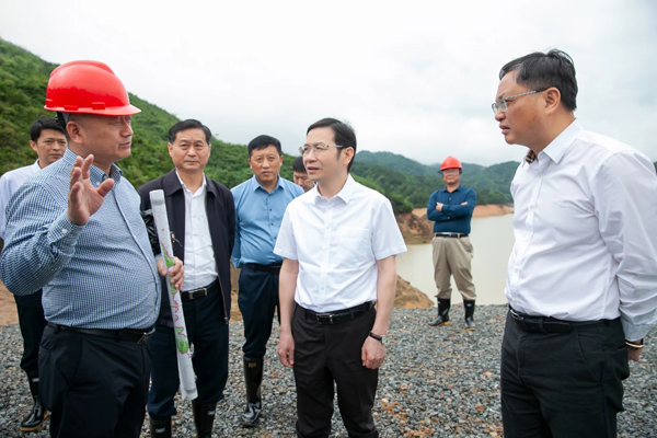 集團(tuán)資訊2021年5月21日上午,鷹潭市委書記黃喜忠深入由我集團(tuán)承建的貴溪市塘灣水庫(kù)除險(xiǎn)加固工程進(jìn)行實(shí)地調(diào)研,指導(dǎo)在建工程防汛備汛。塘灣水庫(kù)壩址以上控制流域面積22.6平方公里,總庫(kù)容1321萬(wàn)立方米,灌溉面積1.43萬(wàn)畝,電站裝機(jī)容量320千瓦。塘灣水庫(kù)除險(xiǎn)加固工程于2020年11月開工建設(shè),目前在各參建單位共同努力下,按計(jì)劃穩(wěn)步推進(jìn),主體工程有望在合同工期內(nèi)完工。黃喜忠登上水庫(kù)大壩,實(shí)地查看了項(xiàng)目建設(shè)進(jìn)展情況,并對(duì)水庫(kù)加固工程建設(shè)工作提出明確要求。他指出,要在確保質(zhì)量和安全的前提下,加快推進(jìn)項(xiàng)目建設(shè),確保早日建成見效。黃書記強(qiáng)調(diào),各參見單位在工作中要堅(jiān)持人民至上、生命至上,切實(shí)把確保人民生命安全放在第一位落實(shí)。