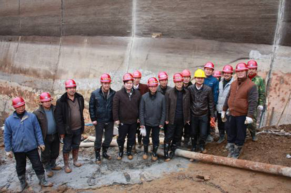 董事長(zhǎng)、總經(jīng)理王元旦一行首先來(lái)到基坑澆筑、混凝土攪拌站等施工現(xiàn)場(chǎng)進(jìn)行察看,與施工人員一一握手,并聽(tīng)取了春節(jié)期間帶領(lǐng)員工奮戰(zhàn)在施工一線的公司副總經(jīng)理聶玉和的生產(chǎn)情況匯報(bào)。董事長(zhǎng)、總經(jīng)理王元旦詳細(xì)詢問(wèn)了攪拌站的生產(chǎn)能力能否滿足施工要求,工程的進(jìn)展情況及后期施工中的各項(xiàng)措施,對(duì)項(xiàng)目部全體員工放棄節(jié)假日搶工期、保質(zhì)量、抓進(jìn)度的奉獻(xiàn)精神給充分肯定和高度評(píng)價(jià),他勉勵(lì)大家保證質(zhì)量安全的前提下,抓緊時(shí)間完成大壩防滲面板的施工、再苦再累也要咬緊牙關(guān)挺過(guò)去,并要求施工項(xiàng)目部合理安排好大家春節(jié)期間的工作和生活。