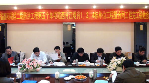 驗(yàn)收會(huì)由江西省鄱陽(yáng)湖區(qū)二期防洪工程第五個(gè)單項(xiàng)工程建設(shè)項(xiàng)目部副主任陶理志主持,建設(shè)項(xiàng)目部總工程師鄒軍賢、宜春市水利局劉啟明副局長(zhǎng)、樟樹市水利局吳學(xué)輝、公司副總經(jīng)理胡鴻煌等出席了驗(yàn)收會(huì)。