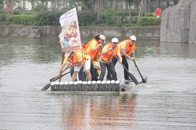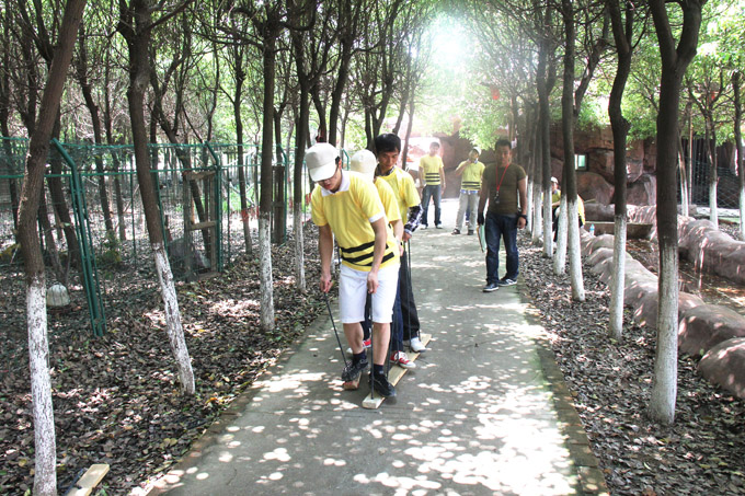 乘車到達(dá)農(nóng)莊后,活動(dòng)的第一項(xiàng)內(nèi)容是隊(duì)列訓(xùn)練,全體人員統(tǒng)一著裝,聽(tīng)從教練口令,立正、稍息、向右看齊,動(dòng)作一致,隊(duì)列整齊劃一,個(gè)個(gè)精神抖擻。隊(duì)列訓(xùn)練結(jié)束后,是闖關(guān)奪冠比賽,79人被分為5個(gè)小分隊(duì),每隊(duì)成員積極發(fā)揮聰明才智,隊(duì)長(zhǎng)集思廣益,為本隊(duì)征集隊(duì)名和Logo,并在隊(duì)旗上描繪出具有本隊(duì)特色的動(dòng)員口號(hào)。每支小分隊(duì)發(fā)有一張地圖,起點(diǎn)不同,但都需闖過(guò)五大難關(guān),每一關(guān)都規(guī)定隊(duì)員必須先完成指定任務(wù),再回答十個(gè)問(wèn)題,用時(shí)最少,回答問(wèn)題準(zhǔn)確率最高的一隊(duì)為勝。這五大難關(guān)分別是:祥龍獻(xiàn)寶,瑞龍戲珠,猛龍吐珠,潛龍轟天,碧水龍舟。比賽過(guò)程中,青年員工們熱情高漲,目標(biāo)明確,充分發(fā)揮團(tuán)隊(duì)協(xié)作精神,爭(zhēng)分奪秒完成各項(xiàng)任務(wù)。這是屬于我們青年人的舞臺(tái),恣意揮灑著青春,布滿汗水的笑臉在陽(yáng)光下熠熠生輝。經(jīng)過(guò)緊張激烈的比拼后,最終第一小分隊(duì)奪得最后的冠軍,歡呼祝賀聲響成一片。