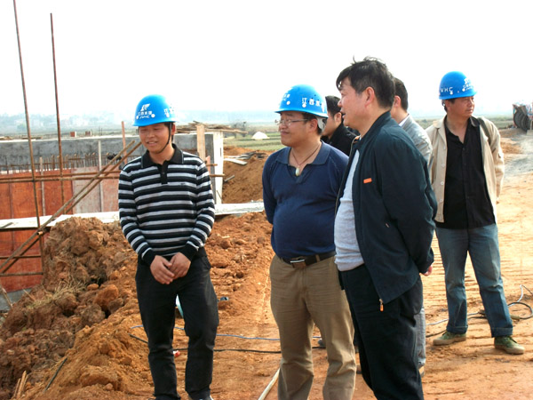 董事長、總經(jīng)理王元旦察看施工現(xiàn)場