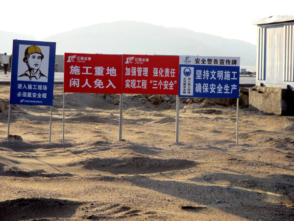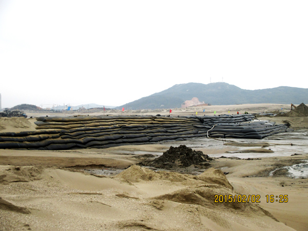 平潭綜合實(shí)驗(yàn)區(qū),主島為海壇島,位于福建省東部,與臺(tái)灣隔海相望,是中國(guó)大陸距離臺(tái)灣島最近的地方,是中國(guó)第五大島,有福建的“馬爾代夫”之稱。平潭綜合實(shí)驗(yàn)區(qū)如意湖防潮閘工程項(xiàng)目總投資1.3億元,我公司承建的土建工程包括排澇閘、防潮閘、公路橋、上下游兩岸翼墻、防沖消能、控制房等土建工程施工(含導(dǎo)流明渠開挖、圍堰填筑)。平潭(簡(jiǎn)稱嵐)年平均風(fēng)速超過(guò)五級(jí)以上,大風(fēng)呼嘯,沒來(lái)這里感受不到風(fēng)有多大!依據(jù)工程設(shè)計(jì)及進(jìn)度要求,在落差8m潮汐中的軟基上進(jìn)行圍堰模袋充砂以截流海水,在惡劣地質(zhì)條件的海中建閘,與潮水賽跑、跟臺(tái)風(fēng)搶工期,潮起潮落,給工程建設(shè)平添了許多艱難與艱辛。
