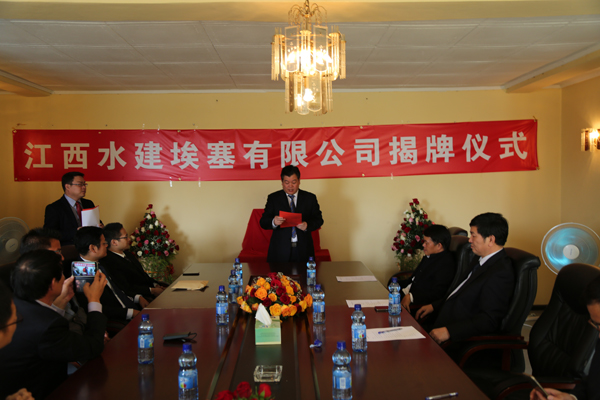 2015年4月26日埃塞當(dāng)?shù)貢r(shí)間上午10點(diǎn),江西水建埃塞有限公司在埃塞舉行揭牌儀式。公司董事長王元旦、總經(jīng)理徐洪良、副總經(jīng)理兼海外公司執(zhí)行董事張周平、副總經(jīng)理兼海外公司總經(jīng)理黃鄭民、副總經(jīng)理王俊華等領(lǐng)導(dǎo)及在埃員工參加了揭牌儀式,公司董事長王元旦和埃塞有限公司總經(jīng)理王毓平共同為埃塞公司揭牌并致辭。