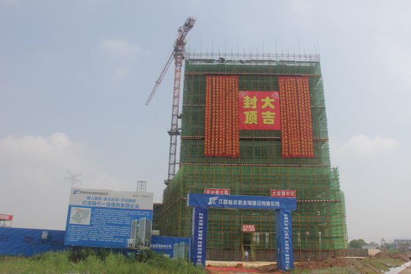 2015年6月12日上午,位于南昌縣千億建筑產(chǎn)業(yè)園區(qū)的公司總部大樓工程,舉行了隆重儀式,慶祝大樓順利封頂。公司董事長王元旦一行參加了儀式,并走進大樓內(nèi)部實地察看工程建設情況。