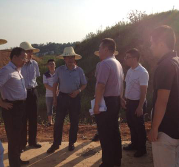 集團(tuán)資訊 2015年07月13日下午,江西省水利廳副廳長(zhǎng)廖瑞釗、五河辦黃國(guó)金等領(lǐng)導(dǎo)一行來(lái)到我公司承建的江西省五河治理贛州市城市防洪工程社背堤現(xiàn)場(chǎng)視察指導(dǎo)工作。