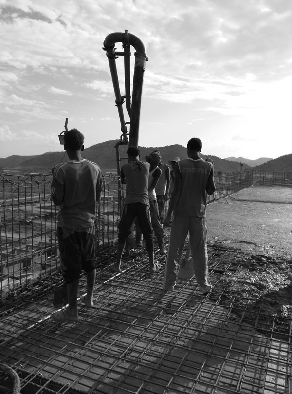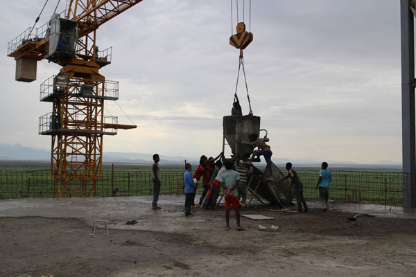 該項(xiàng)目位于接近赤道的埃塞俄比亞南部,素以氣候炎熱而著稱,施工條件頗為艱苦。施工過程中,項(xiàng)目部成員每天早出晚歸,常常一站就是一天,二十四小時(shí)連班也是家常便飯。在主廠房接近封頂?shù)年P(guān)鍵時(shí)刻,項(xiàng)目部全體員工有的夜里跟隨混凝土罐車執(zhí)行押車任務(wù),有的深夜依然堅(jiān)持在澆搗一線指揮作業(yè),連續(xù)奮戰(zhàn)數(shù)日,終于完成封頂大任。
