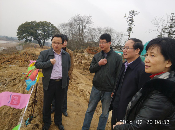 省水利廳副廳長楊丕龍(右二)一行來到施工現(xiàn)場指導工作
