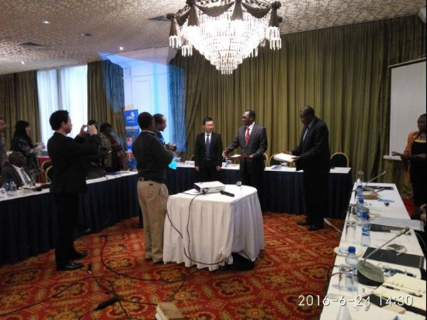 董國(guó)鋒處長(zhǎng)及肯尼亞商務(wù)部首席秘書Dr Chris Kiptoo共同頒發(fā)此次培訓(xùn)的結(jié)業(yè)證書