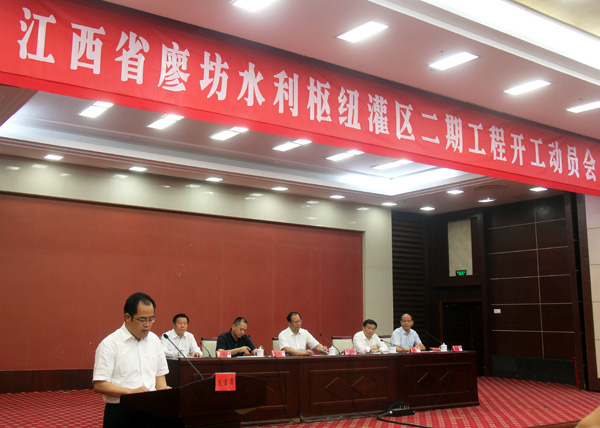 9月22日上午,廖坊水利樞紐灌區(qū)二期工程開工動員會召開。省委常委、常務(wù)副省長毛偉明出席并講話;市委書記肖毅主持,市委副書記、市長張鴻星致辭,水利部建管司副司長張嚴(yán)明、省發(fā)改委主任吳曉軍、省水利廳副廳長廖瑞釗參會并講話;公司總經(jīng)理徐洪良代表項(xiàng)目參建單位在會上作表態(tài)發(fā)言;省直有關(guān)部門領(lǐng)導(dǎo),撫州市四套領(lǐng)導(dǎo)班子成員,撫州市相關(guān)單位領(lǐng)導(dǎo)及項(xiàng)目參建各方代表參加了會議。