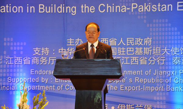 2017年4月20日,由江西省人民政府主辦,中華人民共和國(guó)駐巴基斯坦大使館支持,江西省商務(wù)廳、中國(guó)進(jìn)出口銀行江西省分行等承辦的“央企-贛企合作建設(shè)中巴經(jīng)濟(jì)走廊懇談會(huì)”在巴基斯坦首都伊斯蘭堡召開,中共江西省委書記、江西省人大常委會(huì)主任鹿心社應(yīng)邀出席會(huì)議并致辭。