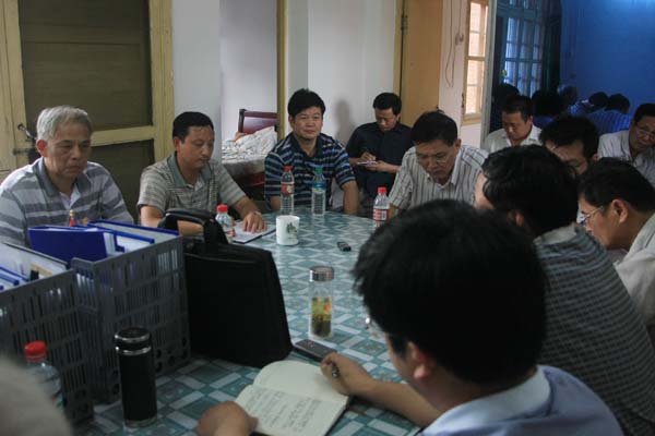 陳達(dá)恒副省長在現(xiàn)場(chǎng)聽取業(yè)主、監(jiān)理、施工單位情況匯報(bào)