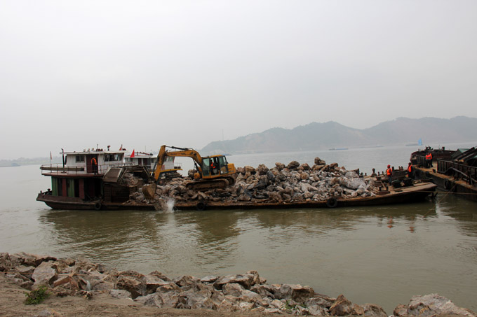 江心洲拋石施工現(xiàn)場