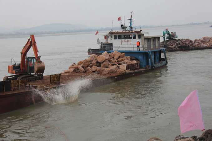棉船洲拋石施工現(xiàn)場