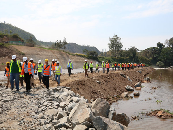 6月6日,世行官員、業(yè)主委員會(huì)、爭端解決委員會(huì)、監(jiān)理等項(xiàng)目相關(guān)方一行50余人來到項(xiàng)目現(xiàn)場,對(duì)項(xiàng)目進(jìn)度及ESHS方面進(jìn)行現(xiàn)場檢查。檢查團(tuán)先后來到大壩圍堰區(qū)、取水口、廠房、支洞、廠房住宅區(qū)和項(xiàng)目營地進(jìn)行檢查。世行對(duì)項(xiàng)目總體進(jìn)度表示滿意,同時(shí),希望承包商繼續(xù)加快進(jìn)度,特別針對(duì)關(guān)鍵節(jié)點(diǎn)進(jìn)行資源合理配置,爭取項(xiàng)目早日建成發(fā)電。