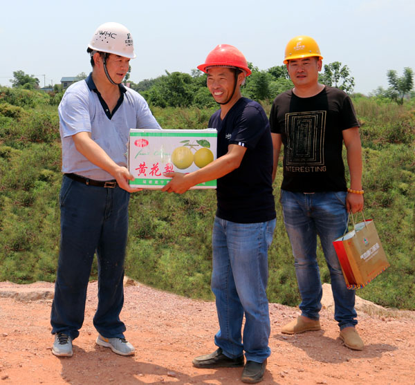頂著炎炎烈日,王元旦董事長一行先后來到盧前隧洞、北樓隧洞、曾家渡槽、渡王家渡槽、會(huì)源隧洞等施工現(xiàn)場進(jìn)行檢查,親切看望慰問現(xiàn)場員工,并送上了防暑降溫慰問品。每到一處,他總是親切詢問員工的工作與生活情況,并叮囑項(xiàng)目部要合理安排工作時(shí)間,保障防暑降溫物品的供給,為員工提供安全、清涼的工作與生活環(huán)境。
