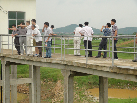 驗收工作組成員查看鎮(zhèn)3標寺山電排站