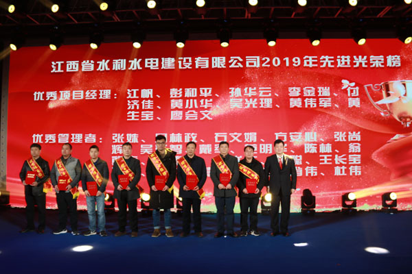 隨后,公司董事長王元旦等領導向潦河灌區(qū)解放閘壩除險加固工程設計施工總承包(EPC)項目、盧旺達RUSUMO瀑布水電站項目等16個優(yōu)秀團隊,彭和平、黃生寶等10位優(yōu)秀項目經理,張姝、張聰等20位優(yōu)秀管理者和應怡超、程春鋒等40位優(yōu)秀員工予以表彰。感謝他們在過去的2019年為江西水建發(fā)展所作出的貢獻。
