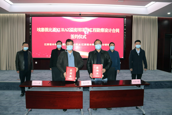 2月28日,我公司與江西省水利規(guī)劃設(shè)計(jì)研究院正式簽訂埃塞俄比亞kuraz溢流壩項(xiàng)目勘察設(shè)計(jì)合同。省設(shè)計(jì)院黨委書(shū)記江凌,副院長(zhǎng)、黨委委員柯勁松,公司黨委書(shū)記、董事長(zhǎng)王元旦,海外公司執(zhí)行董事張周平等領(lǐng)導(dǎo)出席簽約儀式。