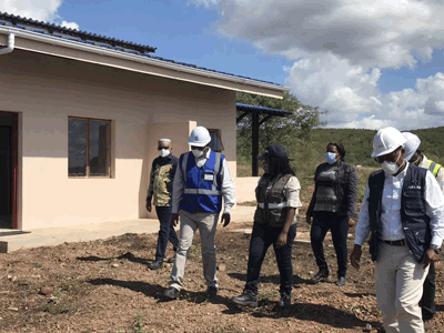 Cecilia女士先后參觀了移民房、副壩、溢洪道和水庫管理站新辦公大樓,并現(xiàn)場(chǎng)觀摩了弧形閘門的啟閉演示。她邊看邊問,詳細(xì)了解各分部工程的建設(shè)情況和項(xiàng)目總體進(jìn)度,認(rèn)真聽取日常施行的各項(xiàng)防疫措施;在得知項(xiàng)目即將竣工的消息后,對(duì)承包商的表現(xiàn)表示高度贊賞。她動(dòng)情地說道,盡管現(xiàn)在新冠肺炎肆虐全球,但是優(yōu)秀的中國(guó)承包商在做好各項(xiàng)防控措施的基礎(chǔ)上,仍然堅(jiān)守戰(zhàn)線、迎難而上,充分體現(xiàn)了履約精神和奉獻(xiàn)精神,值得尊敬!她表示,也許疫情將持續(xù)一段時(shí)間,但是只要承包商有困難,就要毫不猶豫地向政府表達(dá),公共工程部永遠(yuǎn)是承包商堅(jiān)強(qiáng)的后盾。她強(qiáng)調(diào),業(yè)主國(guó)家水務(wù)局和承包商要更加精誠(chéng)團(tuán)結(jié),充分估計(jì)疫情可能造成的各類影響,謀劃在前、全盤統(tǒng)籌,以縝密的防控措施和有力的生產(chǎn)行動(dòng)站好最后一班崗,如期實(shí)現(xiàn)項(xiàng)目移交和運(yùn)營(yíng),為300萬首都人民帶去生命之水。