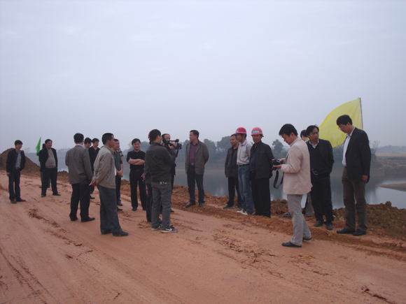 文林副廳長(zhǎng)仔細(xì)察看了項(xiàng)目施工現(xiàn)場(chǎng)情況,并耐心聽(tīng)取了我司項(xiàng)目經(jīng)理雷才文的工程情況匯報(bào)。梓埠1標(biāo)自去年11月份開(kāi)工以來(lái),目前已完成了馬鞍山電排站、周灣排灌站、堤腳拋石固腳、堤身深層攪拌防滲墻等項(xiàng)目,堤身土方填筑及混凝土預(yù)制塊制作正在緊張進(jìn)行。文副廳長(zhǎng)聽(tīng)完匯報(bào)后,對(duì)梓埠1標(biāo)的施工工作提出了幾點(diǎn)要求,一是業(yè)主單位要盡快解決好征地問(wèn)題,為工程的順利實(shí)施創(chuàng)造良好條件;二是施工單位要抓住晴好天氣,加快堤身土方填筑及預(yù)制塊制作進(jìn)度,并加強(qiáng)質(zhì)量控制。